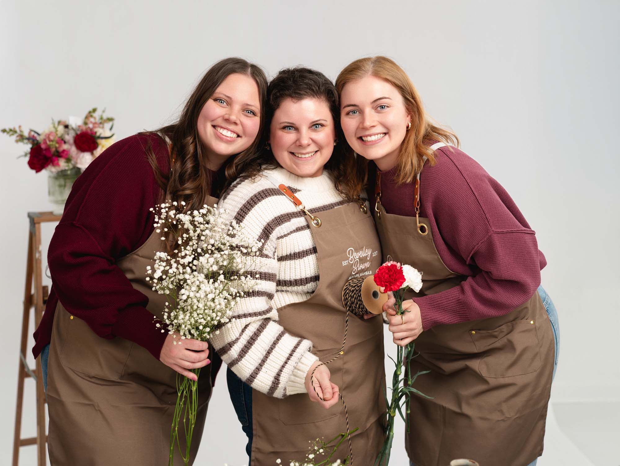 Over the years, Beverley Brown evolved well beyond its original boutique roots. By 2024, the sisters had introduced permanent jewelry, offering customers custom-fit pieces that symbolize enduring connection. In early 2025, the business blossomed again - this time quite literally - with the addition of fresh florals, leading to a thoughtful rebrand as Beverley Brown & Co. Today, Beverley Brown & Co. offers a carefully curated mix of women's and men's apparel, accessories, footwear, and unique small gifts. Their daily fresh floral cooler draws in passersby with color and fragrance, while their services - customer floral arrangments, monthly floral subscriptions, silk florals, and even a floral bar rental - cater to events and occasions of all kinds. The sisters also continue to offer permanent jewelry by appointment or during special in-store events, emphazising the personal touch that defines their brand.