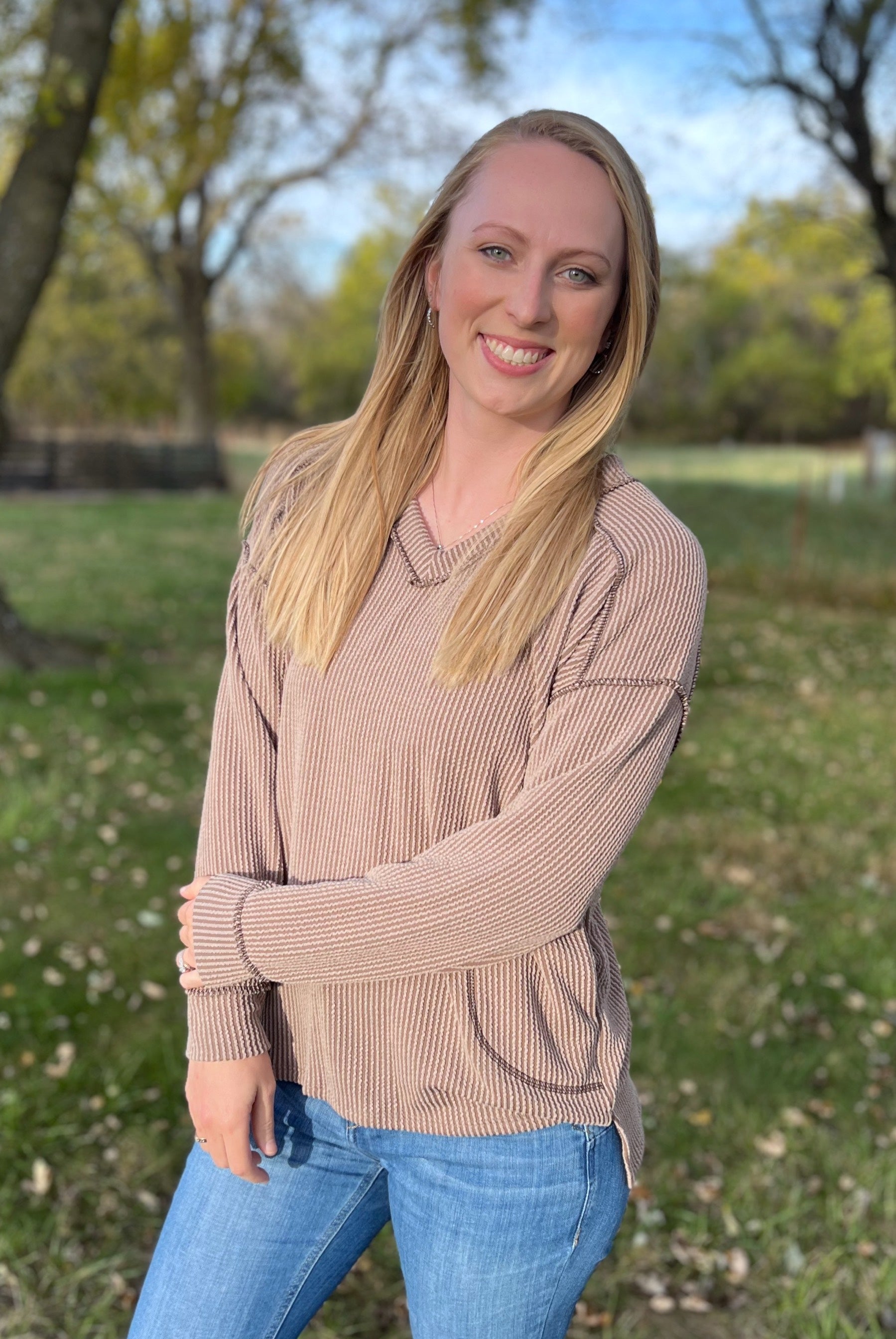 Meet the Tinley Sweater—your new fall layering essential that's as practical as it is stylish. This rich brown long-sleeve features a flattering ribbed material that hugs just right, plus handy pockets to keep your essentials close. Perfect for throwing over your favorite tees or pairing with everything in your closet, the Tinley brings warmth and texture to your autumn wardrobe. Cozy, versatile, and endlessly wearable—this is the top you'll reach for again and again.